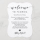 Diese moderne und elegante Karte ist der perfekte Platz für Ihre Hoteltaschen. Geben Sie die wichtigsten Veranstaltungen und einen individuellen Hinweis ein, um Ihren Gästen zu helfen, das Wochenende zu bewältigen.