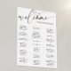 Elegante und minimalistische Sitzplakette für eine Hochzeit oder jede Art von Veranstaltung. Willkommen ist in einem Gold-Folie-Skript geschrieben, mit bitte finden Sie Ihren Platz unten. Dann drei Namensspalten, in denen Sie die Namen Ihrer Gäste und die Tischnummer in schwarz schreiben können, um sie lesbar zu machen.