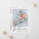 Eine schlichte und elegante Geburtsankündigung mit dem Foto Ihres Neugeborenen, das in einem stilvollen Schriftsatz mit "Welcome" überlagert wird. Geben Sie den Namen, das Geburtsdatum und die Geburtsdaten Ihres Babys ein. Fügen Sie auf der Rückseite weitere 3 Fotos und eine personalisierte Nachricht hinzu.