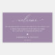 Elegantes und modernes Begrüßungsgeschirr. Template enthält Zeilen für Ihre Nachricht, Namen und Ereignisdatum. Weiße Typografie auf dem lila Farbhintergrund des Lavendels.
