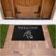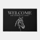 Begrüßung der Pferderaube für Zuhause, Stall oder Stall. Schwarz-Weiß-Teppich mit eigenem Familiennamen. Elegante Typografie mit moderner Linienkunst zeichne von Hengst. Erhältlich in kleinen und großen Größen. Anpassbare Farben.
