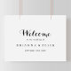 Dieses moderne kalligraphische Begrüßungszeichen ist perfekt für eine rustikale Hochzeit. Das einfache und elegante Design zeichnet sich durch klassische und extravagante Schriftzeichen in Schwarz und Weiß aus. Machen Sie dieses Poster zu Ihrem eigenen, indem Sie den Namen der Braut und Bräutigam, und das Datum der Hochzeit.