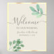 Beginnen Sie Ihre Gäste mit diesem eleganten rustikalen Hochzeitszeichen mit handgemalten Aquarellen in sanften Salbei- und Eukalyptustönen. Ein goldenes Imitat umrahmt das minimalistische Design, Set vor einem hellbeigen Hintergrund mit romantischer Kalligrafie - perfekt für Hochzeiten im Freien und botanische Themen.