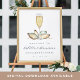 Dieses schicke Küsten-Austern- & Champagner-Begrüßungszeichen besticht durch sanfte Creme- und Aqua-Aqua-Aquarellauster, Perlen und Flöten-Illustrationen mit Namen, Veranstaltungsname und Datum in klassisch marineblauer Schrift. Ideal für Hochzeitsfeiern, Hochzeitsfeiern, Hochzeitsfeiern oder Hochzeitsfeiern mit Probe zum Thema Strand, Sommer oder Wassersport.