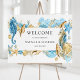 Unter dem Sea Blue Gold Wedding Willkommenszeichen mit Seepferden, Seesternen, Muscheln und Korallenriffen. Für eine erweiterte Anpassung dieses Designs, klicken Sie bitte auf den Button "Anpassen" oben! Matching-Elemente sind ebenfalls verfügbar.