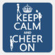 Behalt Calm and Cheer On (Cheerleader)(beliebige F Quadratischer Aufkleber