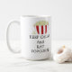 Behalt Ruhe und fresse Popcorn. Popcorn-Schüssel mit warmem, butterigem Popcorn.