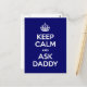 Postcard Sprichwort "Behalt Calm and Aks Daddy" im Stil des britischen Weltposters "Keep Calm and Carry On". Sie können Ihre eigene Hintergrundfarbe auswählen, indem Sie den Button 'Anpassen!' und 'Bearbeiten' -> 'Hintergrund' verwenden.
