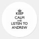 Behalt Calm und hör Andrew zu Runder Aufkleber