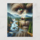 Eine phantastische Sasquatch-Illustration mit Bigfoot, Bergen, Elch, einer Fluss und Fluss Postkarte, um in Touch mit Freunden und Familie behalten, während Sie sich ausruhen!
