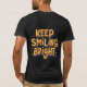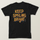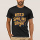 Dieses lebendige T - Shirt-Design zeichnet sich durch die Phrase "Behalt Lächeln hell" in einem spielerischen, farbenfrohen Schriftart aus. Das Design ist perfekt für jeden, der will, Positivität und gute Stimmung zu verbreiten.