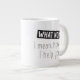 Jumbo Einige Tage, eine normale Tasse Joe wird einfach nicht funktionieren. Wenn du etwas mehr Koffein brauchst, dann hole dir die extra große Kaffeetasse von Zazzle. In sie passen 590 ml. Perfekt für Suppe, Müsli, Eis oder auch Chili! Diese riesige Tasse hat einen C-förmigen Griff für komfortables Trinken. Abmessungen: Höhe: 4,5" Durchmesser: 3,9" Fassungsvermögen: 20 Unzen Mikrowelle und Geschirrspülersicherheit Strong, Keramik construction erfüllt oder übertrifft die FDA-Anforderungen für Lebensmittel- und Getränkeservice Designer Tipp: Um den hochwertigen Druck zu gewährleisten, beachten Sie bitte, dass der anpassbare Designbereich dieses Produkts 4" hoch x 10,5" breit ist