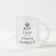 Behalt Ruhe und lass (leer) behandeln es lustige Mattierte Glass Coffee Tasse. Machen Sie Ihre eigene coole Tasse für Tee, Kaffee und andere Getränke. Fun Birthday Geschenk Idee für Freunde, Familie, Kollegen, Mitarbeiter, Chef etc. Fügen Sie Ihren eigenen einzigartigen Namen. Schwarz-Weiß-Text mit Krone. Anpassbare Farben.