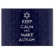 Enthält den Text "CALM BEHALTEN UND ALIYAH MACHEN". Alija (עֲ לִ ה), was Aufstieg bedeutet, ist das hebräische Wort für die Einwanderung aus der Diaspora nach Israel. Aliyah gilt als "hinauf" in Richtung Jerusalem. Wofür warte du?