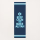 Blau-Weiß-Text mit dem Text "BEHALT CALM UND MAKE ALIYAH". Alija (ע ל י ה), was Aufstieg bedeutet, ist das hebräische Wort für die Einwanderung aus der Diaspora nach Israel. Aliyah gilt als "hinauf" in Richtung Jerusalem. Wofür warte du?