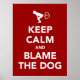 Behalt Ruhe und gib dem Hund die Schuld. Der beste Freund des Menschen, besonders wenn man gerade gefarbt hat - es ist immer eine gute Ausrede, dem Hund die Schuld zu geben! Im Stil des berühmten Keep Calm und Carry On Poster. Retro Charme mit einer Drehung!