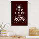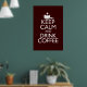 "Behalt Ruhe und trinken Kaffee" Poster. Sie können die Farbe des HINTERGRUND anpassen, indem Sie auf den orangefarbenen Knopf "IT KONZERTIEREN" klicken und die Farbe auf "BEARBEITEN - Hintergrund ändern" ändern