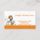 Berufliche Reinigung mit einer Dame, die einen Eimer mit einer Visitenkarte für Blasen hält. Ideal für Werbung und das Wachstum Ihres Unternehmens.