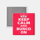 Behalt Calm und Bunco On Grafik Spaß Design. Gutes Geschenk oder Preise für Ihr nächstes Bunco Event. Vorgestellt ist eine Krone und drei Würfel.