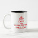 Behalten Sie Ruhe und hören Sie auf den Zweifarbige Tasse