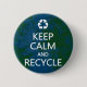 Behalten Sie Ruhe und recyceln Sie am Erdtag und an jeden Tag. Dieses Produkt erinnert Sie, Ihren Kohlenstoffabdruck zu verringern, indem es recyclables in den recycelnden Behälter bei der Arbeit oder zu Hause einsetzt. Blauer grüne Erdtonhintergrund mit weißem recycelndem Symbolzeichen und der Text, der von "erinnernd ist, behalten Ruhe und machen" britisches lustiges Sprichwort weiter. Copyright © www.CuteComfy.com