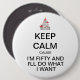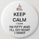 Unser BEHALTEN Sie RUHIGEN lustigen fünfzigsten Geburtstags-Knopf ist eine Spaßgeschenkidee für die Freunde, die 50 drehen! Verfügbar in einer Vielzahl von Größen mit den Mengenrabatten verfügbar!