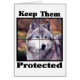 Ein naher Wolf in den Kreuzhaaren mit den Worten Behielt sie geschützt um sie herum. Lass nicht, dass der Wolf von der geschützten Liste entfernt wird. Zeigen Sie Ihre Liebe des Wolfs