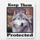 Ein naher Wolf in den Kreuzhaaren mit den Worten Behielt sie geschützt um sie herum. Lass nicht, dass der Wolf von der geschützten Liste entfernt wird. Zeigen Sie Ihre Liebe des Wolfs