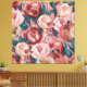 Canvas Print mit Abstraktem Ölgemälde braunbeige Blume mit blauen Blätter floralen Hintergrund. Die Wohngestaltung der Wall Street.