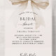 Beige, cremefarbene Unterlage, mit großem Bogen geschmückt. Personalisieren und hinzufügen von Namen, Party, UAWG, Rücksendeadresse und Namen.