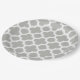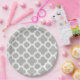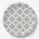 Beige graues weißes Retro-Ikat-Quatrefolienmuster Pappteller
