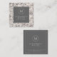 Beige Linen Elegant Floral | Medallion Monogramm Quadratische Visitenkarte