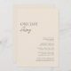 Beige moderne Whimsikschrift einen Tag entfernt Einladung