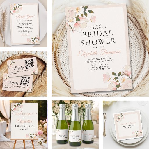 Celebrate the bride's day with this cute and elegant floral bridal shower design, featuring a delicate floral print in soft pink and beige. This design is ideal for setting the perfect tone for a sophisticated and joyful celebration, creating lasting memories with friends and family. For complementary products please see the collection of this cute design.