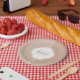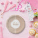 Beige und hellbeige Teller mit einem Hahnentrittmuster in vertikalen Streifen. Dieses zeitgenössische Design in einem stilvollen hellbraunen Ton personalisieren, indem man den Namen und die Monogramm-Initialen der modischen jungen Frau hinzufügt.