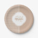 Beige und Tan-Hahnentrittmuster-Monogramm und Name Pappteller