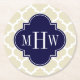 Beige Welch marokkanischer #5 Navy Blue 3 Initial Runder Pappuntersetzer