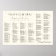 Beiger minimaler alphabetischer Hochzeitssitzplan Poster