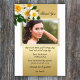 Elegantes Blumendenkmal oder Begräbnis Foto Dankeschön Karte mit Rose auf einem goldfarbenen und weißen Hintergrund. Eine nachdenkliche Art, Ihnen zu sagen Dankeschön an diejenigen, die an der Beerdigung oder Gedenkfeier einer geliebten oder in irgendeiner anderen Weise geholfen.