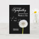 Schicken Sie Ihr Beileid wegen des Schwangers. Eine ruhige Leuchte Uhr, deren Samen sanft auf den Wind schwebend, Set vor einem dunklen Hintergrund. Die Karte ruft Frieden, Erinnerung und den natürlichen Fluss des Lebens hervor.