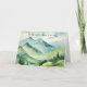 Schöne grüne und blaue Farbtöne einer Bergwelt und Baum in Aquarell zum Beileid. Inside Vers kann geändert werden.