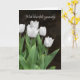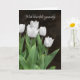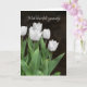 Weißer Tulpenbukett auf dunkelstrukturiertem Hintergrund für allgemeines Beileid. Text kann gelöscht werden.