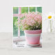 Pinkfarbener Babyatematsch in rosa Topf durch ein sonniges Fenster zum Beileid. Der Insider-Text kann geändert werden.