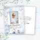 Schenken Sie Ihren Gästen eine Wertschätzung für die Erinnerung an Ihre Liebsten, nachdem sie auf ihrer Feier des Lebens Gedenkstätte mit der eleganten Blue Tinted Carnation Floral Beileid Flat Dankeschön Note Card. Diese elegante, individuell gestaltete, blumengeschmückte Bestattungstribude zeichnet sich durch ein digital Aquarellbild mit Blumenblättern aus weißer Nelkenblüte und hellblauer Blume aus. Personalisieren Sie es mit dem Namen, den Geburtsdaten und den Todesdaten und dem Bild des Verstorbenen.