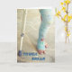 Foto eines farbenfrohen blauen Vollbeines gegossen auf meiner Nichte, auf einer Karte, um einem verletzten Freund "Get Well" zu wünschen.