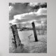 Posts in the Snow ist ein Poster aus zwei Holzpfählen im Schnee mit dicken flauschigen Wolken an einem sonnigen Tag im Hintergrund. Fertig in schwarz-weiß.