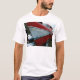 Ein niedriger und naher Schuss der Seite von einem klassischen roten und weißen Chevy Bel Air von der Rückseite, diese fantastische Flosse gefangennehmend!