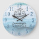 Vielleicht sind Sie ein glücklicher Camper mit diesen schönen blauen Bergen mit Nebel und Himmelsdesign. Mit Vintagen, blauen und weißen Ziffern, Emailziffern und Vorlagen für einen Monogrammnamen und ein Subjekt, in diesem Fall "Camper".