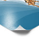 Ein abstraktes Kunstdesign aus Blitzen vor blauem Hintergrund.