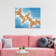 Ein abstraktes Kunstdesign aus Blitzen vor blauem Hintergrund.